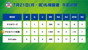 11:00~第3試合 デビルバッツ札幌 7vs2 カミLabo