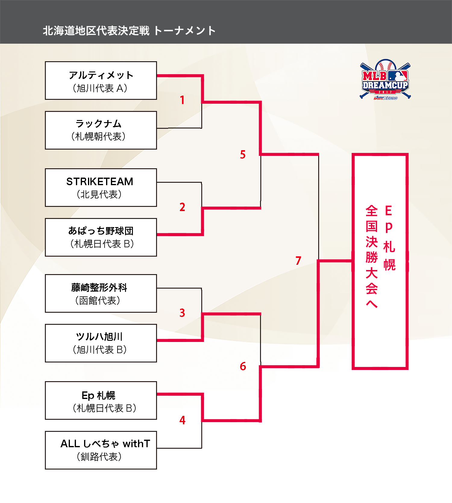 9月30日(土)〜10月1日(日)に全地区に先駆けて北海道代表決定戦が行われました。トーナメント戦の結果、全国決勝大会開催地の沖縄へのJTB旅行券100万円とTexas RangersのMLBマジェスティックユニフォームを一番乗りで手にしたのは札幌日代表B「Ep札幌」となりました、おめでとうございます!