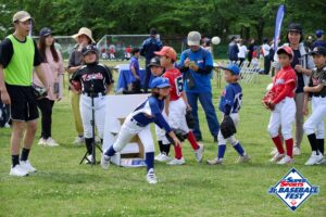 オフィシャルサプライヤーであるナガセケンコーのティーボール用バット、ボールを使用して全チームが2試合ずつ対戦