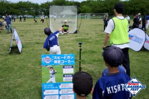 各参加者がご自身の投球スピードを測定できるコーナーを設置