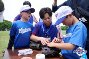 エグゼクティブパートナーであるゼビオグループ主催で参加者の方たちへグラブのお手入れ方法などをレクチャー