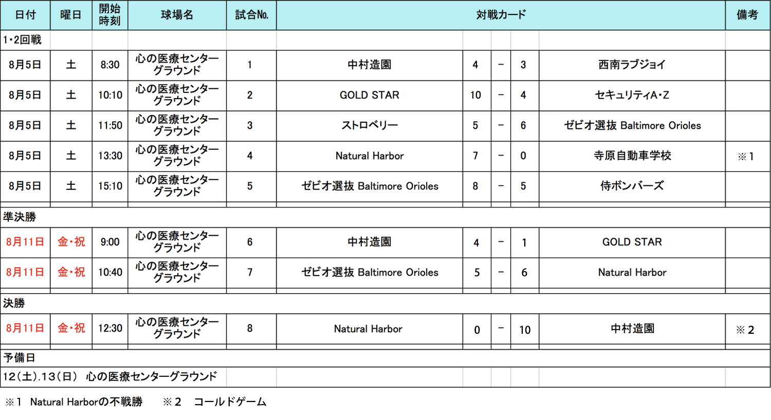 「Natural Harbor」「GOLD STAR」「ゼビオ選抜 Baltimore Orioles」の皆様大健闘でお疲れ様でした。また来年もお待ちしております!