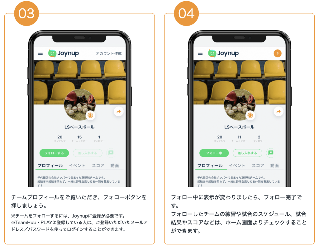 ※チームをフォローする際には、Joynupに登録いただくことが必要です。